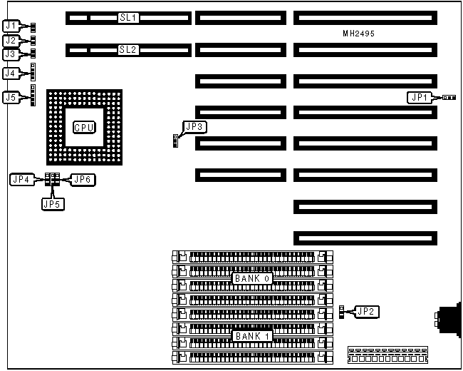 Note:This board will handle a 80486DX4 with an adapter supplied from Magus. The settings for this adapter are unidentified by the manufacturer. |