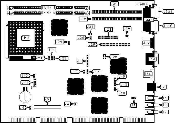 Ethernet 10BaseT connector, floppy drive interface, parallel port, PS/2 mouse port, serial ports (2), VGA feature connector, VGA port, USB connector, line in, line out, microphone in |