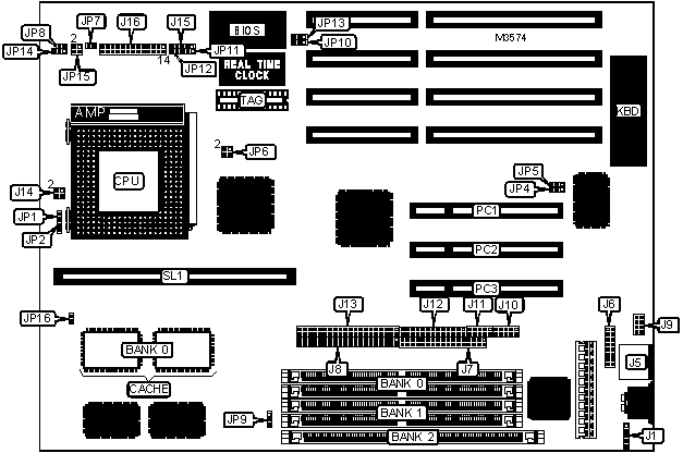 Note: Board accepts EDO memory. Bank 2 accepts DIMM modules