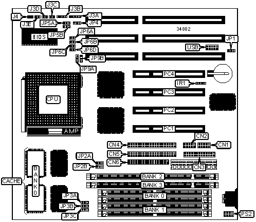 Note: Board accepts EDO memory. Do not populate banks 0 & 3 at the same time.