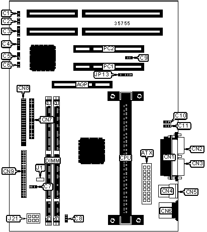 Note: 256KB/512KB cache is located on the Pentium II CPU. 128KB cache is located on the Celeron 300A & 333 CPU. |