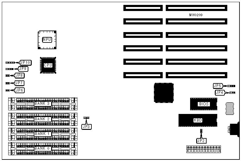 *Note:Pins 1 & 2 are closed when 256KB or 1MB SIMM's are used; pins 2 & 3 are closed when 4MB SIMM's are used. 9MB and 10MB memory configurations were available; however, we were unable to verify the correct settings. | |