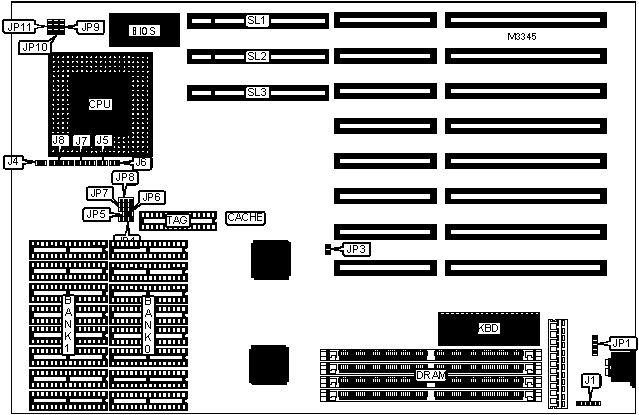 Note: The location of the banks is unidentified. Board also accepts x 32 SIMMs. | ||