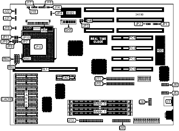 Note: Board accepts EDO memory. Board also accepts x 32 SIMMs. Banks are interchangeable. | ||