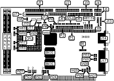 Floppy drive interface, green PC connector, IDE interface, SCSI interface, parallel port, PS/2 mouse interface, serial ports (2), VGA feature connector, VGA port, flat panel connector |