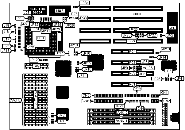 32-bit PCI slots (4), green PC connector, floppy drive interface, IDE interfaces (2), parallel port, serial ports (2), VRM connector |