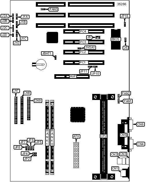 32-bit PCI slots (4), floppy drive interface, IDE interfaces (2), parallel port, PS/2 mouse port, serial ports (2), AGP slot, USB ports (2), IR connector, green PC connector, ATX power connector |