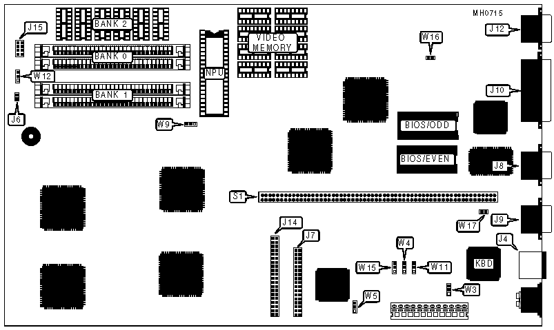 Bus mouse port, floppy drive interface, IDE interface, parallel port ,proprietary bus expansion slot, serial ports (2), video interface |