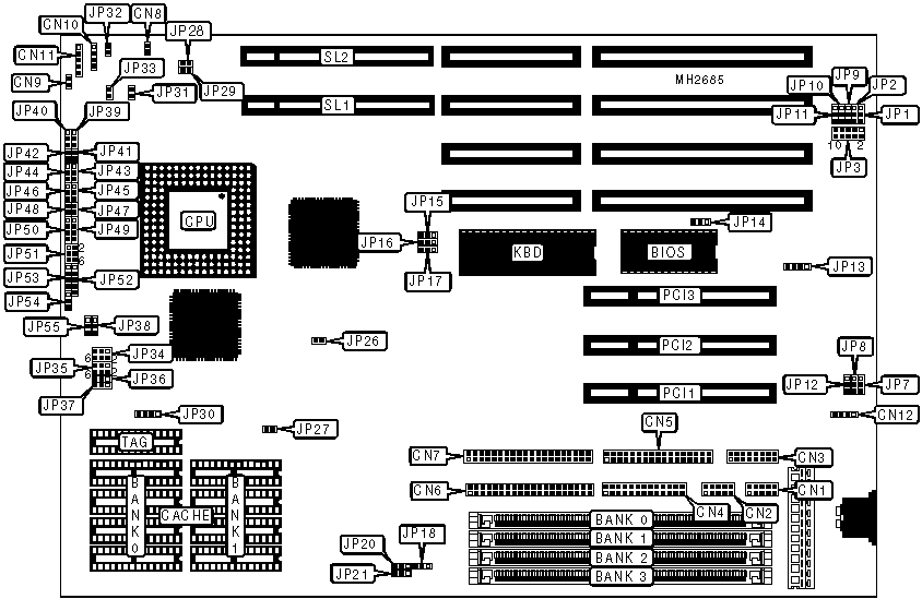 32-bit VESA local bus slots (2), 32-bit PCI slots (3), floppy drive interface, game port, green PC connector, IDE interfaces(2), parallel port, serial ports (2)