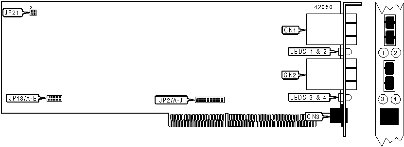 Note: When the board is operated in soft configuration mode, jumpers JP13 and JP2 must be open. JP21/pins 1 & 2 function to toggle I/O address selection. If an I/O address collision is detected during installation, the shunt on JP21/pins 1 & 2 can be removed (while the PC is running) to force the software to try the next larger I/O address. For example, if a collision is detected using I/O address 300h, removing shunt on JP21/pins 1 & 2 will force the software to try I/O address 320h. |