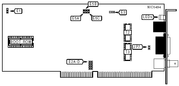 Note:If you leave E5B closed you can select the cable type through the software setup utility included with the card. However, you must still move the Isolation transformer to the appropriate socket.
