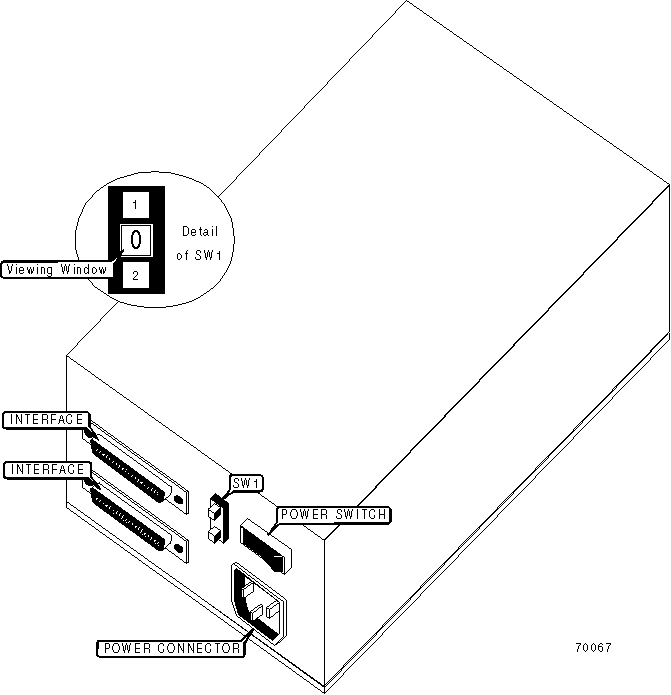 Note: SCSI ID is selected by activating SW1 until the desired number is displayed in the viewing window.