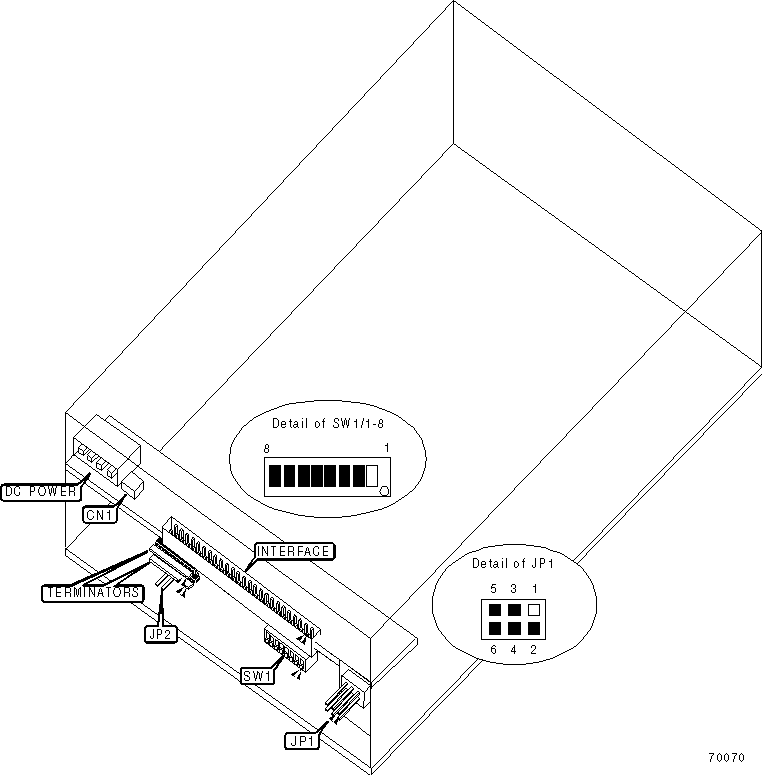 Note: If using Pins 1-6 of JP1 for SCSI ID selection, S1, S2, and S3 of SW1 must be set to the ‘Off’ position.
