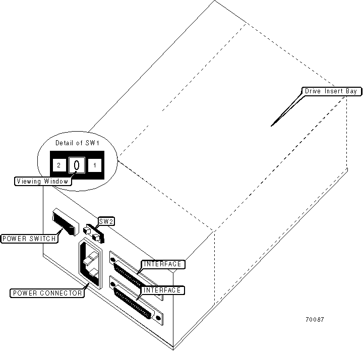 Note: SCSI ID is selected by activating SW1 until the desired number is displayed in the viewing window. |