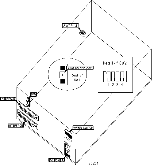 Note: SCSI ID is selected by activating SW1 until the desired number is displayed in the viewing window. |