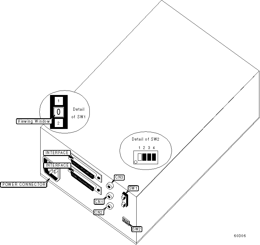 Note: SCSI ID is selected by activating SW1 until the desired number is displayed in the viewing window. |