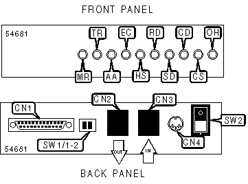 Line in (RJ-11), line out (RJ11), DTE port (25-pin serial connector),