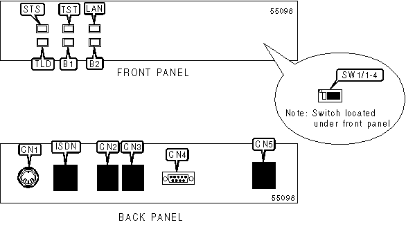 Power, UTP Ethernet interface via RJ-45 connector, 9-pin serial port ISDN interface (ST or U) via RJ-45 connector, telephone line interface via RJ-11 connectors (2) |