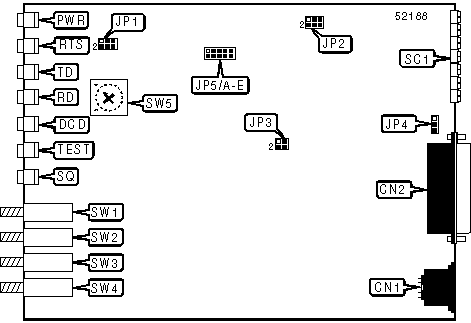 Note: Modem can be made to perform self-test by holding down SW2 and SW4. The DCD, TEST, and SQ LEDs should go on, and the RD LED should go off. | ||||||