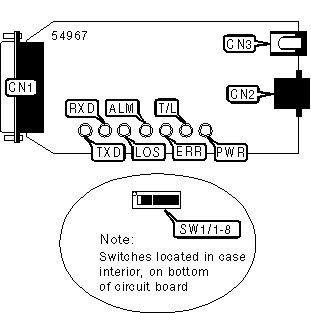 25-pin serial port (RS-232), power, network interface via RJ-48 |