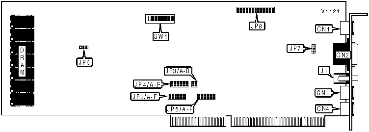 Note: A total of 255 base address settings are available. The switches are a binary representation of the decimal memory addresses. SW1/1 is the Most Significant Bit and switch SW1/8 is the Least Significant Bit. The switches have the following decimal values: SW1/1=32768, SW1/2=16384, SW1/3=8192, SW1/4=4096, SW1/5=2048, SW1/6=1024, SW1/7=512, SW1/8=256. Turn off the switches and add the values of the switches that are off to obtain the correct memory address. (Off=1, On=0)