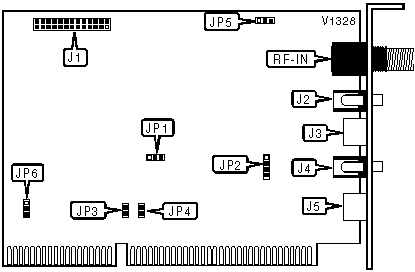 Audio in, audio out/line out, external IR connector, internal audio out, internal IR connector, S-video, tuner in, VGA feature connector, video in |