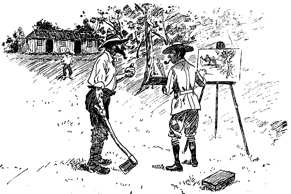 Our artist, while staying in the country, thinks it would be a good opportunity for studying calves.
