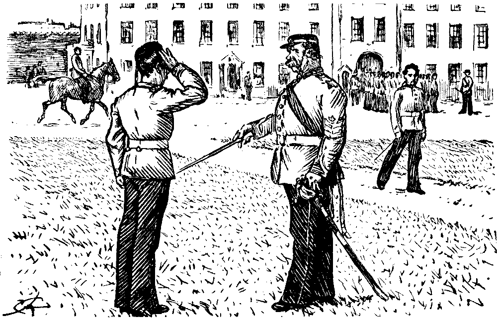 Officer. And yet he is admitted in mufti! Why, here have I had to come up from the country in full rig, being chaffed at the railway station, grinned at by the cabman, and cheered by the crowd!
