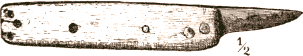 The relationship between these knives and the semilunar slate blades found in the North Atlantic States has already been ably discussed by Dr. Charles Rau.280 It must, however, be borne in mind that while these are sufficiently “fish-cutters” to warrant their admission into a book on fishing, the cutting of fish is but a small part of the work they do. The name “fish-cutter,” as applied to these knives, would be no more 165 distinctive than the name “tobacco-cutter” for a Yankee’s jackknife.281