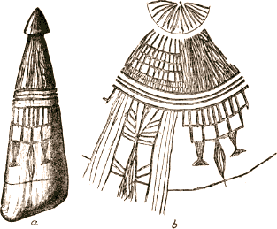 At the present day they are very glad to use white men’s picks and shovels when they want to dig in the gravel or clean out the ice from their houses. They, however, have mattocks and pickaxes 303 (síkla) of their own manufacture, which are still in use. These are always single-pointed and have a bone or ivory head, mounted like an adz head on a rather short haft. The haft, like those of the mauls and adzes already described, is never fitted into the head, but always applied to the under surface of the latter and held on by a lashing of thong.