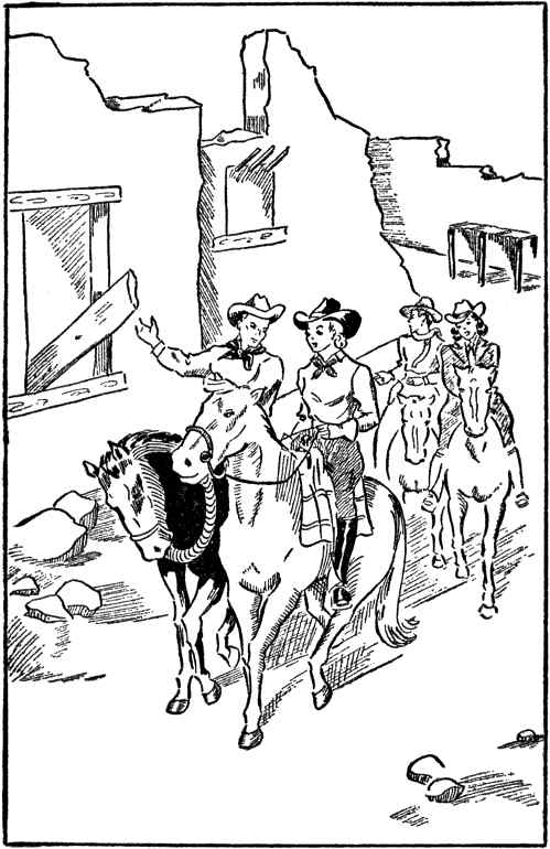 Safely outside of the wall of rocks, the four young people drew their restless horses to a standstill. Mary’s nettlesome brown pony was hard to quiet until Jerry reached out a strong brown hand and patted its head.