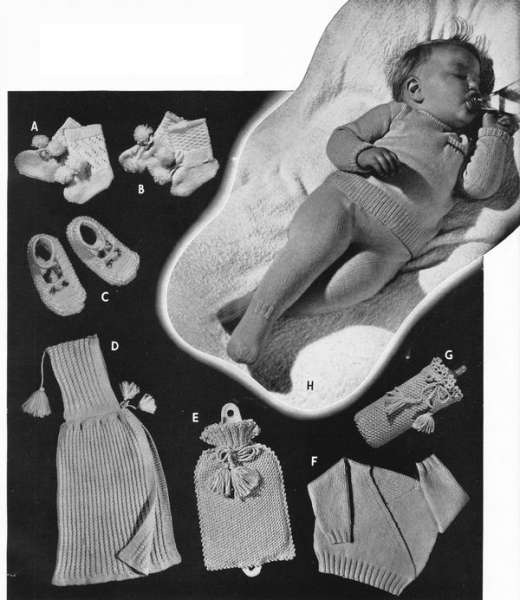 | (G) Bootees—See page 19. | (H) Bootees—See page 17 |
