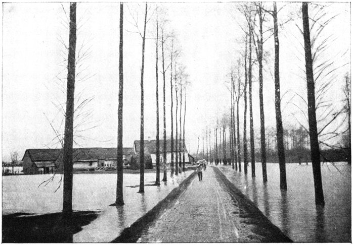 The Yser, a small coastal river, having its source in French Flanders empties itself into the sea between two jetties. Its shallow bed, dredged along the greater part of its course, describes a wide semi-circle. At its mouth, at Nieuport, the Yser and the canals which likewise end there, are closed by a series of locks, which shut out the sea at high tide and prevent it from invading the plain through the streams and canals.