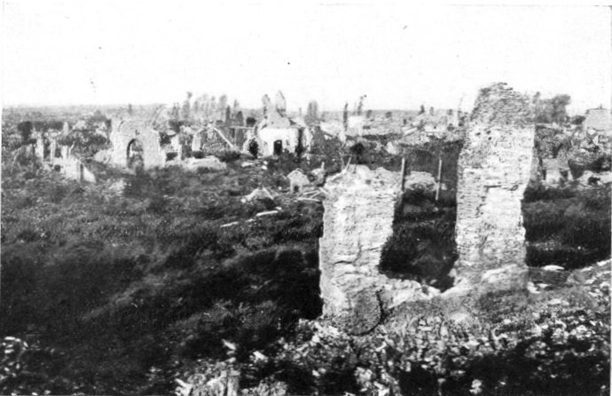 Formerly, flocks of sheep and herds of cattle, tended by grey-coated shepherds, grazed in this plain. Immense fields of beet and turnips alternated with the meadows. Hedges, willows, clusters of bending poplars, and the roofs of the low farmsteads built on little hillocks, broke the monotony of the landscape. Here, where peace and prosperity reigned, the inundations and war have left a vast expanse of reeds, in which the roads, ruined farmhouses and a few broken trees stand out dismally.