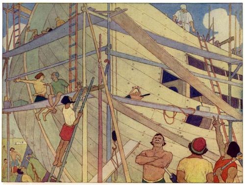 Then Noah went his way, and set to work to build him a great ship, to be ready for the day of deluge.
