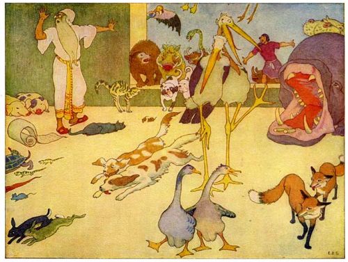 Then new troubles began. For now the other beasts and birds, fearing to be left behind, all tried to get in at once, and could not be controlled.