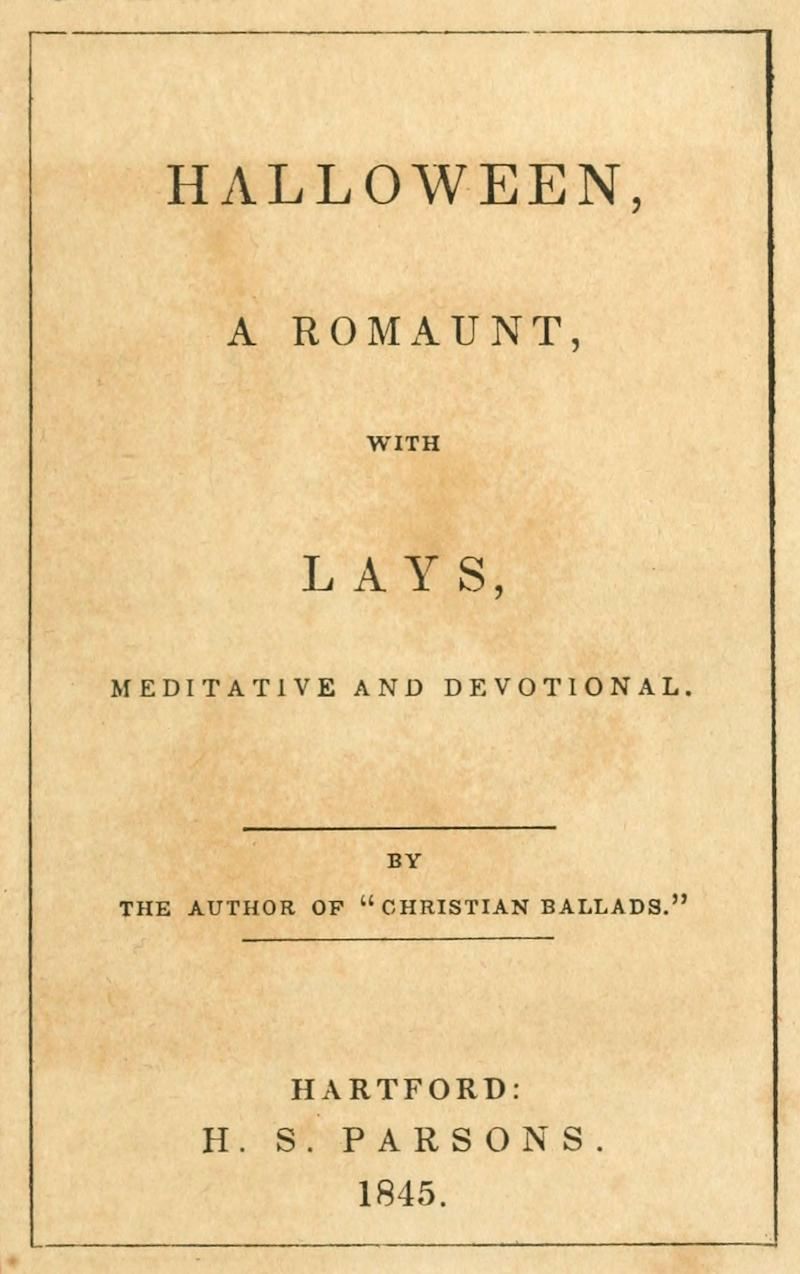 Halloween has been printed, though never published before. In the winter of 1842 I had a private edition, of fifty copies, struck off for my friends. These have been freely loaned and circulated, till the book has been enquired for by strangers, at my bookseller’s; and at his instance, I now allow it to appear. Though I had not intended this, and for many private reasons rather disliked the idea of making it public; I suppose, on the whole, that it will be better to publish it now, than in after life, and to edit it myself, than to leave it to a survivor.