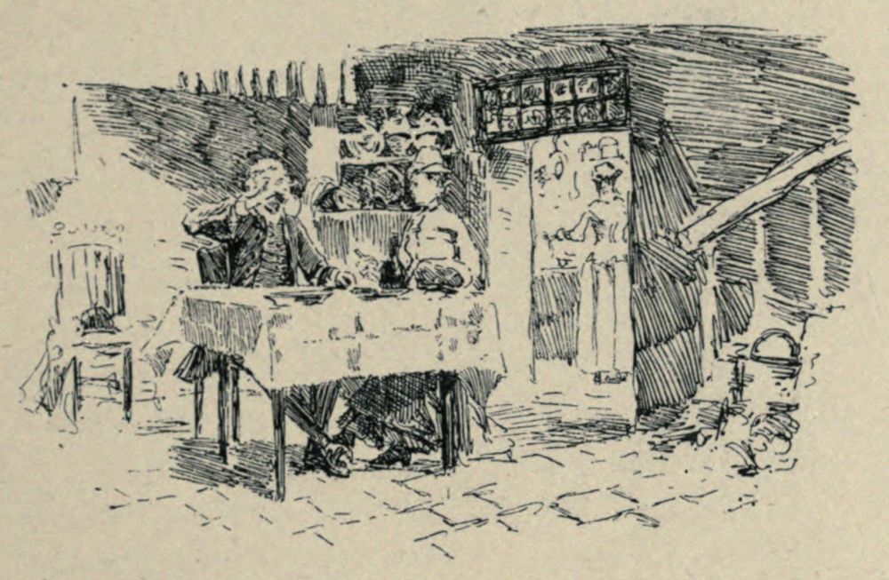 At this early stage there was nothing we looked for less than trouble with the tricycle. It had been carefully put in order by the manufacturers before we left London. But now already the luggage-carrier loosened, and swung around on the backbone of the machine. Do what we would, we[34] could not keep it straight again. In Marquise we bought a leather strap, in hopes to right it, and there also ate our lunch.—From the window of the estaminet we could see that the men and boys who came up to examine the tricycle never once touched it, while a man with a cart of casks, though it was in his way, rather than disturb it, stopped a little farther down the street, and rolled the casks along the pavement. Inside the estaminet, the brisk, tidy woman who cooked and served our coffee and omelette, kept talking of the weather and France and the tricycle, and what a wise manner of travelling was ours. My faith! from the railway one sees nothing.