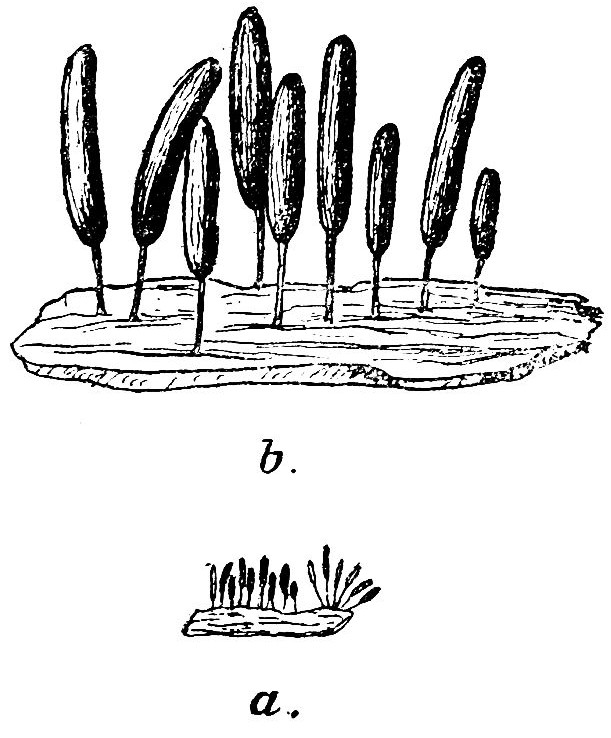 On the sands and mud-flats a semi-desert exists, due in great measure to the shifting nature of the material and the difficulty which plants find in securing an anchorage in it. But in the upper parts, near high-water mark, a few land plants—notably the Glasswort (Salicornia europæa, Fig. 2), a fleshy little annual—colonize the dreary flats with tiny forests of dark green branches, and lower down many small Seaweeds flourish. Some of these, ramifying through the surface layers, help to bind together the shifting sand, and by entangling in their branches fresh particles, and by continued growth, tend to raise and consolidate the surface, to render it suitable for the immigration of land plants such as the Glasswort, and thus eventually to reclaim it from the sea.{18}