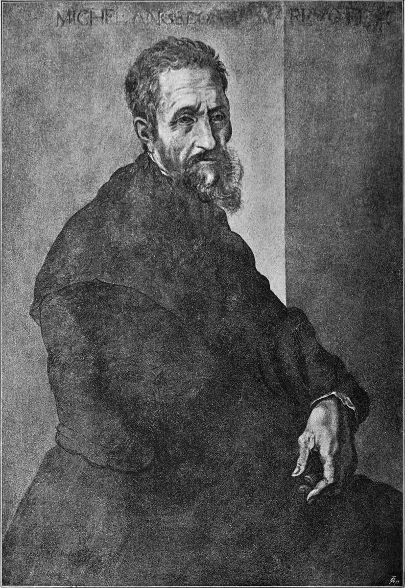Eine Quelle der Belehrung waren für Michelangelo, wie für das ganze damalige Künstlergeschlecht von Florenz, die in den zwanziger Jahren des XV. Jahrhunderts gemalten Fresken des Masaccio in der Brancacci-Kapelle der Kirche del Carmine. Michelangelo zeichnete die bewunderten Vorbilder mit größerem Geschick nach, als irgend einer der anderen, die sich dem gleichen Studium hingaben. Der Neid erwachte und die Feindseligkeit der Neider wurde gesteigert durch Michelangelos Fehler, sich über die schlechten Zeichnungen seiner Genossen lustig zu machen. Eines Tages versetzte ihm einer der jungen Leute, welche in der Brancacci-Kapelle zeichneten, Pietro Torrigiano, der auch Michelangelos Mitschüler im Garten von S. Marco war, einen so heftigen Faustschlag ins Gesicht, daß er ihm das Nasenbein zertrümmerte. Torrigiano floh nach dieser That und wurde aus Florenz verbannt; Michelangelo blieb zeitlebens entstellt.