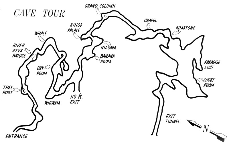 Soon they knew the Davidson story was true, more than true. Crawling from one chamber to another, they found a fairyland of weird grottoes and exquisite stone formations—pillars and spires, drapes, frozen waterfalls and grotesque forms—in shapes and sizes beyond their imaginations. Some they named from resemblance to familiar objects. At others they could only stare in awe and wonder how can it be? Using the rope in steep places, they probed upward into another level of caverns where they were thrilled to find even more elaborate formations. At one place they wrote their names and the date, July 11, 1879. Here and there they saw 2 evidence left by the few others who had entered the cave in the five years since it was discovered by their neighbor, Elijah Davidson. On and on they explored, returning to the entrance only when their last candle was growing short. Outside, stars lighted a midnight sky. Exhausted, happy, they vowed to return, then fell into bedrolls.