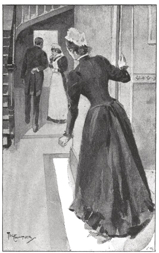 Hoker went home that night sober, but in much perplexity. The thing might be genuine, after all; indeed, there were many little things that made him think it was. But then, if it were, what guarantee had he that he would get his share, supposing the search turned out successful? None at all. But then it struck him for the first time that these jewels, though they may have lain untouched so long, were stolen property after all. The moral aspect of the affair began to trouble him a little, but the legal aspect troubled him more. That consideration, however, he decided to leave over, for the present at any rate. He had no more than the word of Luker and Birks that the jewels (if they existed) were those of Lady Wedlake, and Luker and Birks themselves only professed to know from hearsay. At any rate, his £50 was gone where he felt pretty sure he would have a difficulty in getting it back from, and he determined to wait events. But at least he made up his mind to have some little guarantee for his money. In accordance with this resolve, he suggested, when he met the two men the next day, that he should take charge of the slip of music and make an independent study of it. This proposal, however, met with an instant veto. The whole thing was now in their hands, Luker and Birks laid it down, and they didn’t intend letting any of it out. If Hoker wanted to study the “Flitterbat Lancers,” he could do it in their presence, and if he were dissatisfied he could go to the next shop. Altogether it became clear to the unhappy Hoker that now he had parted with his money he was altogether at the mercy of these fellows, if he wished to get any share of the plunder, or even to see his money back again. And if he made any complaint, or if the matter became at all known, the affair would be “blown upon,” as they expressed it, and his money would be gone. Mostly, though, he resented their bullying talk, and he determined to get even in the matter of the music. He resolved to make up a piece of paper, folded as like the slip as possible, and substitute one for the other at their next meeting. Then he would put the “Flitterbat Lancers” in some safe place, and face his fellow-conspirators with a hand of cards equal to their own. He carried out his plan the next evening with perfect success, thanks to a trick of “passing” cards which he had learned in his youth, and thanks also to the contemptuous indifference with which Luker and Birks had begun to regard him. He got the slip in his pocket, and left the bar. He had not gone far, however, before Luker discovered the trick, and soon he became conscious of being followed. He looked for a cab, but he was in a dark street, and no cab was near. Luker and Birks turned the corner and began to run. He saw they must catch him, and felt no doubt that it they did he would lose the slip of paper, the £50, and everything. They were big, active fellows, and could probably do as they liked with him—especially since he could not call for help without risking an exposure of their joint enterprise. Everything depended now on his putting the “Flitterbat Lancers” out of their reach, but where he could himself recover it. Then it would form a sort of security for his share of the venture. He ran till he saw a narrow passage-way on his right, and into this he darted. It led into a yard where stones were lying about, and in a large building before him he saw the window of a lighted room a couple of floors up. It was a desperate expedient, but there was no time for consideration. He wrapped a stone in the paper and flung it with all his force through the lighted window. Even as he did it he heard the feet of Luker and Birks as they hurried down the street. The rest of the adventure in the court I myself saw.