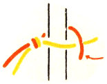 Tie the center of the strands to the center of the core with one end of a piece of cord. Tie the other end of the cord to any firm object so that you can keep the leash pulled tight while you are braiding. Arrange the strands as in figure 15.