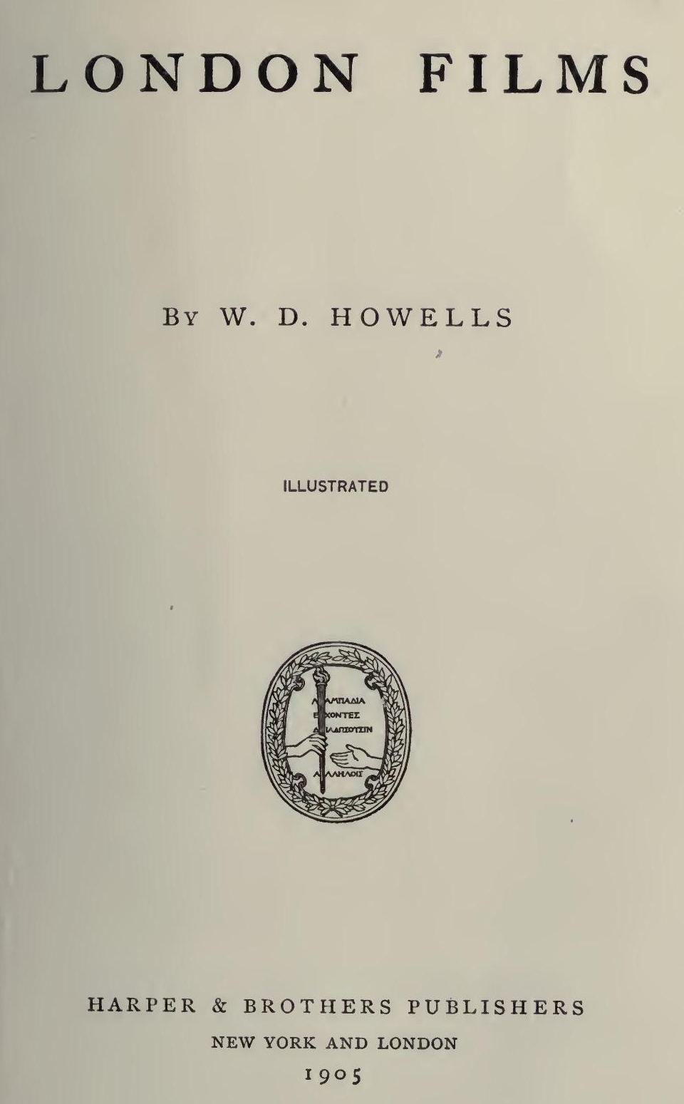The Project Gutenberg EBook of London Films, by William Dean Howells This eBook is for the use of anyone anywhere at no cost and with almost no restrictions whatsoever. You may copy it, give it away or re-use it under the terms of the Project Gutenberg License included with this eBook or online at www.gutenberg.org Title: London Films Author: William Dean Howells Release Date: December, 2004 [EBook #7130] This file was first posted on March 14, 2003 Last Updated: February 25, 2018 Language: English Character set encoding: UTF-8 *** START OF THIS PROJECT GUTENBERG EBOOK LONDON FILMS *** Produced by Eric Eldred, Charles Franks, David Widger and the Online Distributed Proofreading Team