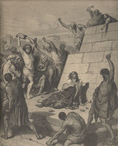 Then they cried out with a loud voice, and stopped their ears, and ran upon him with one accord, and cast him out of, the city, and stoned him: and the witnesses laid down their clothes at a young man's feet, whose name was Saul. And they stoned Stephen, calling upon God, and saying, Lord Jesus, receive my spirit.
