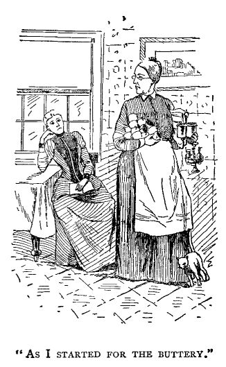 "Oh, wall," sez I, "I can get along some way. And I must hurry up and get the table cleared off any way, and get to my work agin', for I have got to do a lot of cookin' this afternoon. It takes a sight of pies and cakes and such to satisfy twelve or a dozen men."