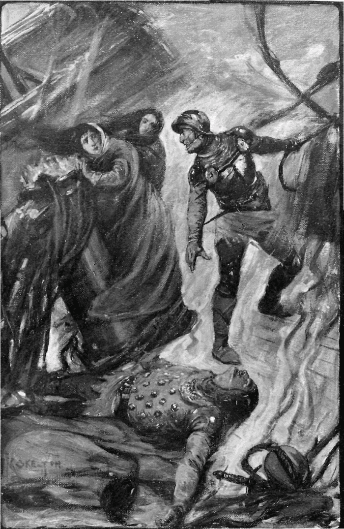 "Sire," he said, "that man," and he pointed to the corpse of Andrew, "tried to do wrong to this maiden, John Castell's child. I, her cousin, threw him down. He drew his sword and came at me, and I killed him with my staff. See, it lies there. Then the Spaniards—his comrades—would have cut me down, and I called for English help. Sire, that is all."