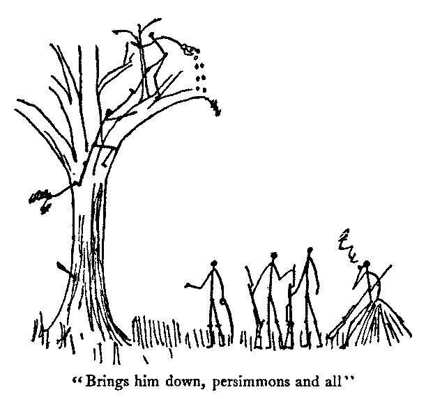 "'Aw, Jim,' I says, 'don't be a fool. The woods may be full of rebels. I'm full as hungry as you are, but I ain't going to stop for any persimmons.'