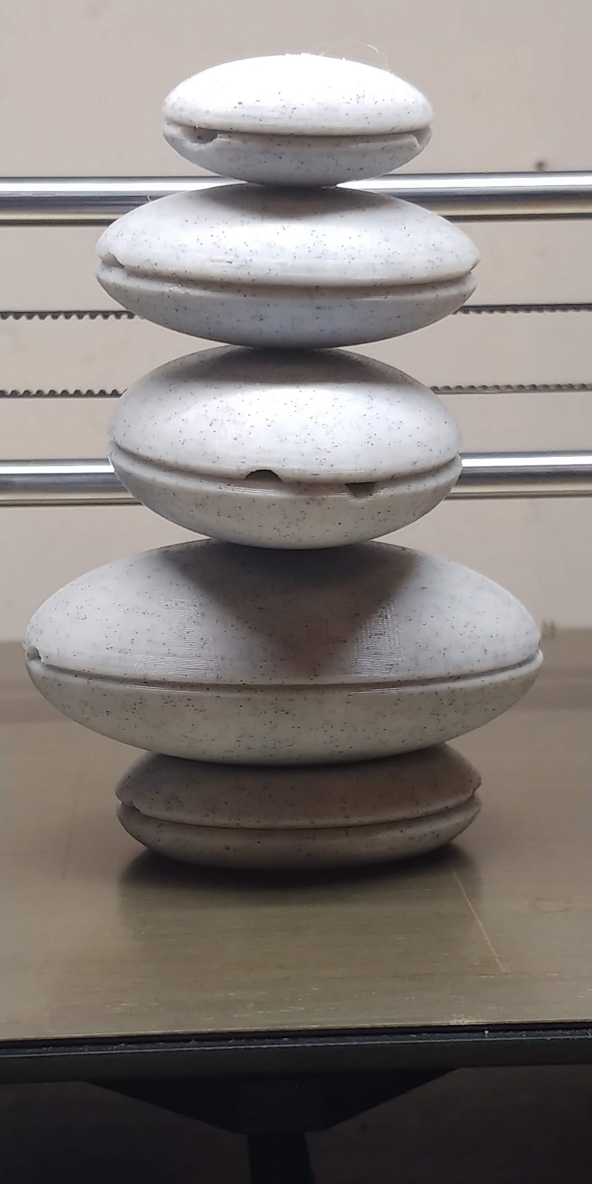 The Pebble "family" of fidgets is a smooth ovoid shaped magnetic haptic slider that uses embedded 6x3mm round magnets, and teflon rails for an easy and controllable haptic fidget. Under your control, it can slide quitely, or snap loudly. It comes in multiple sizes for different sized hands or if you like a weaker/stronger toy. They are printed to order in whatever color you like. Look below for color options.