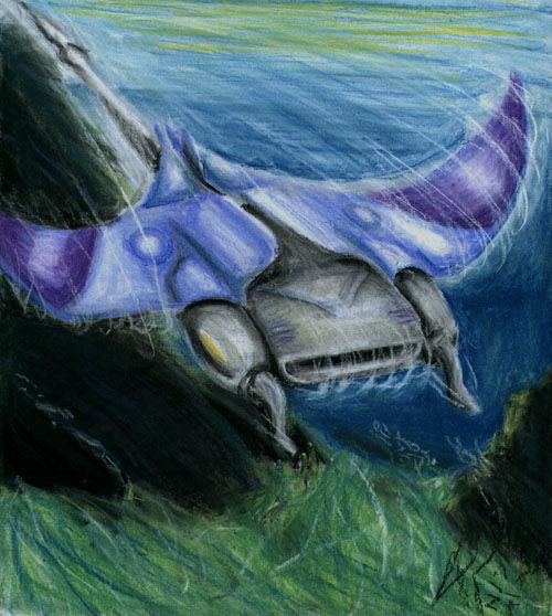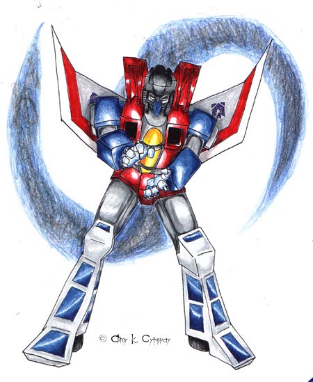 - "Starfury" - Yet another Starscream-based character who appeared in a boredom relief comic gone wild. Prismacolor. (61k, 7-7-00)